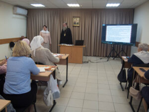 Сегодня для воспитателей провели лекции по «Православному вероучению. Катехизис» педагог священник Димитрий Шевченко и «Истории Русской Православной Церкви» — Елена Анатольевна Салыкина.